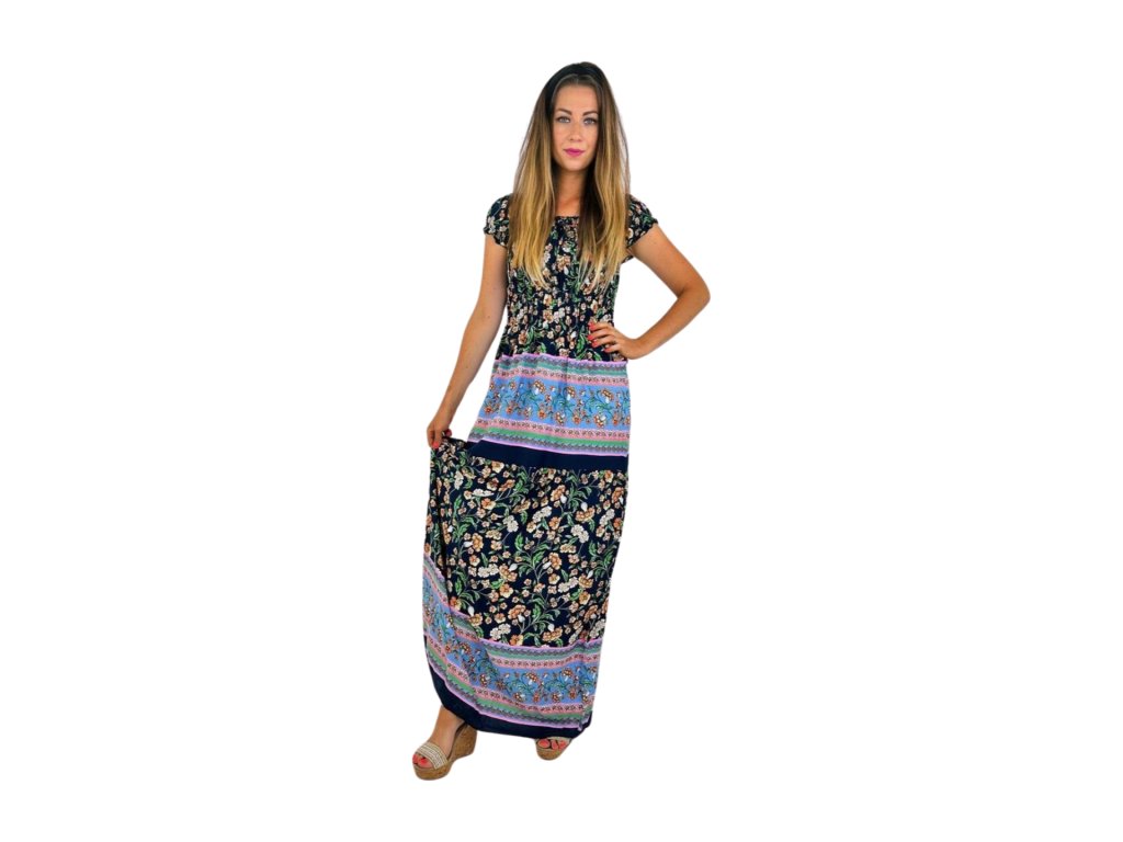 NOVINKA-Letní šaty s žabičkováním - drobné kvítí - modré