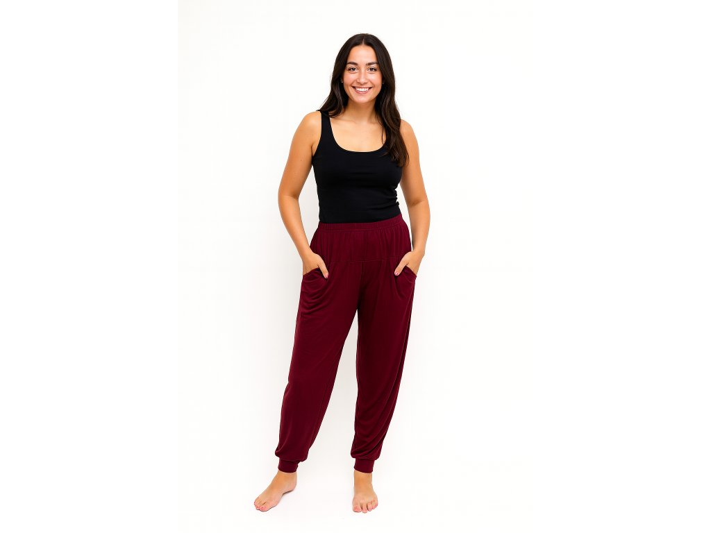 NOVINKA - Pohodlné teplákové kalhoty - vínové