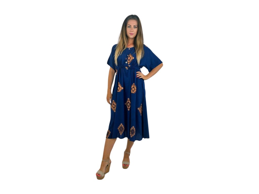 NOVINKA - Šaty s rukávky a zlatou výšivkou - modré