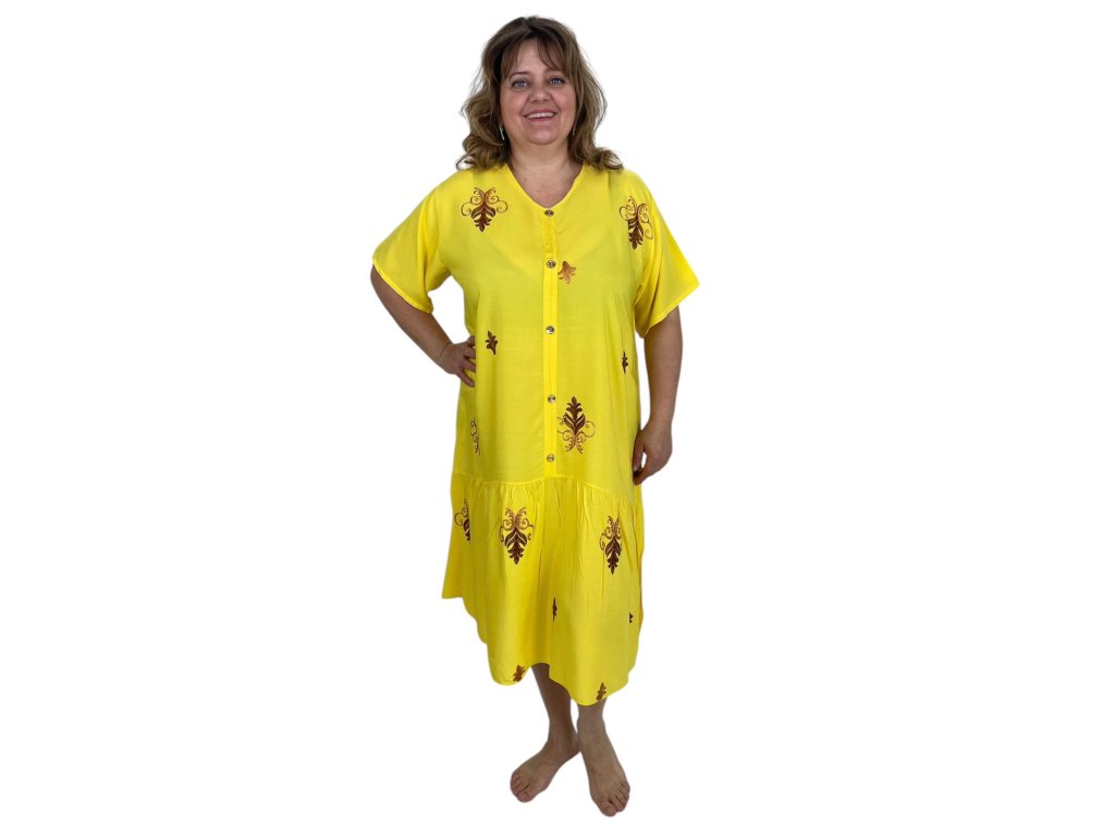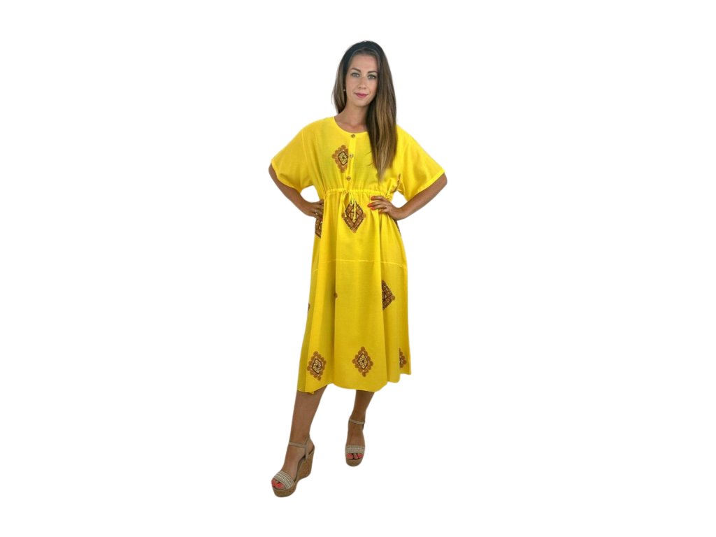 NOVINKA - Šaty s rukávky a zlatou výšivkou - žluté