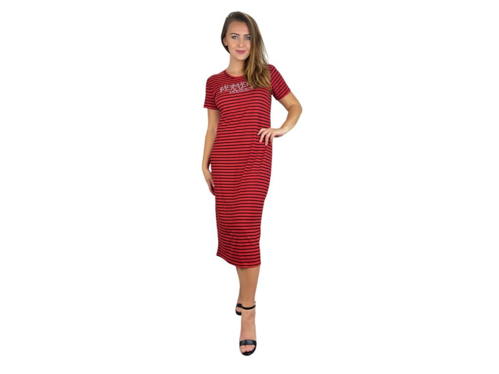 NOVINKA - Šaty s rukávky - proužkované, červené