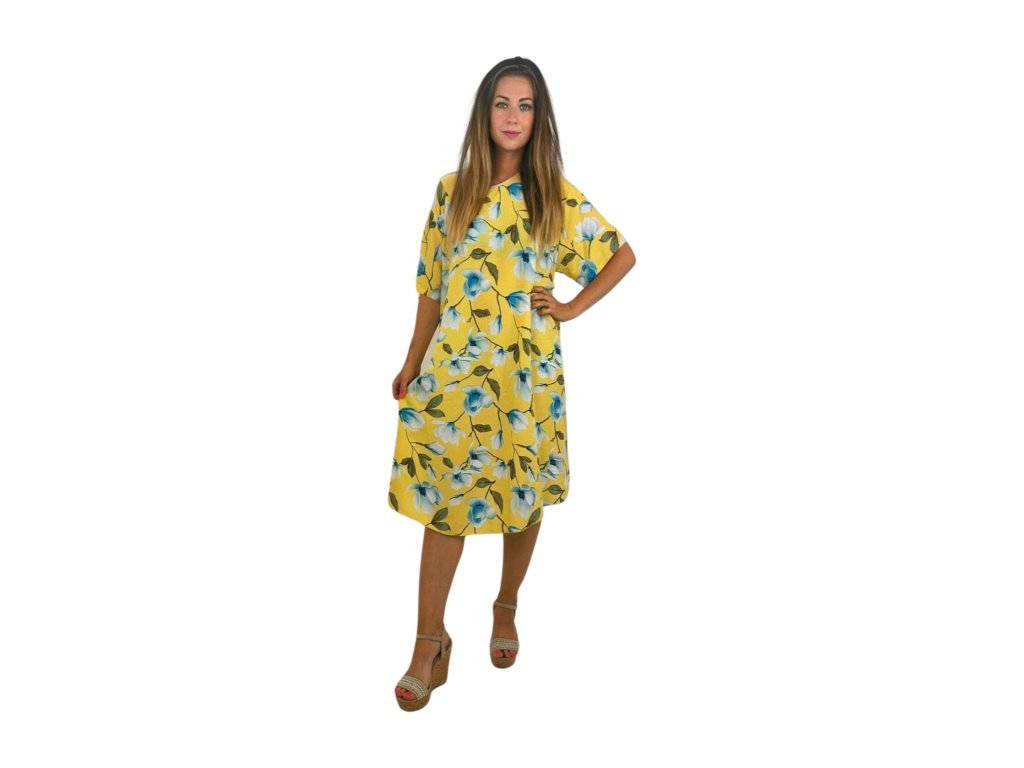 NOVINKA - Šaty s rukávky Růžičky - žluté
