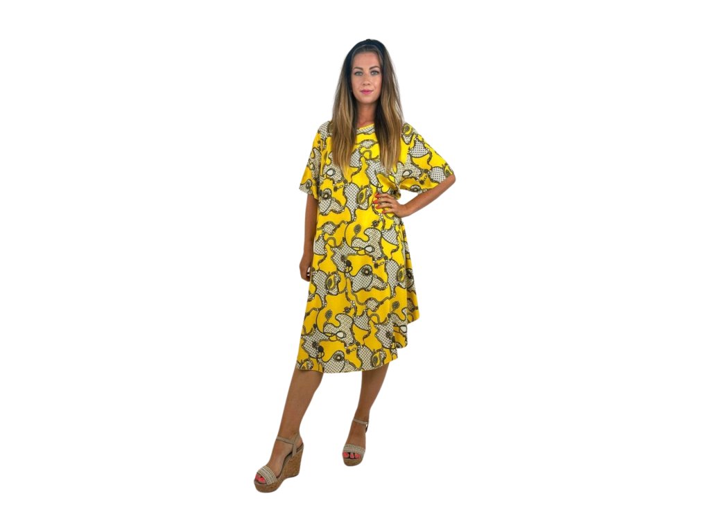 Šaty s rukávky - žluté - Geometric