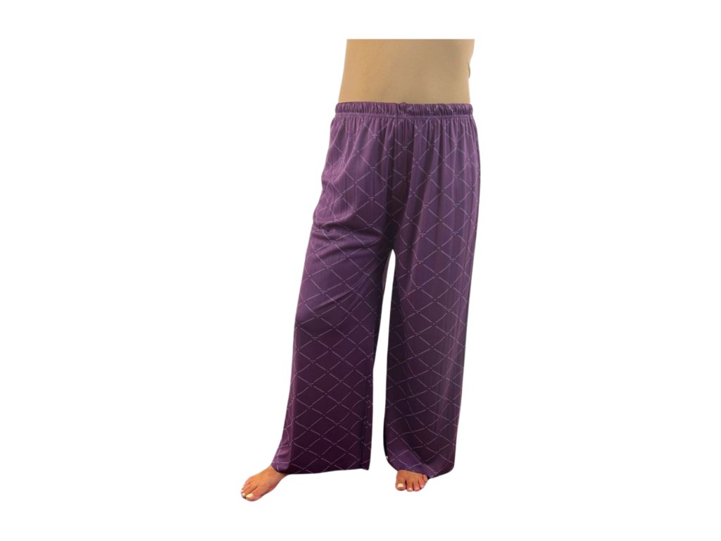 NOVINKA- Volné kalhoty s károvaným vzorem - fialové