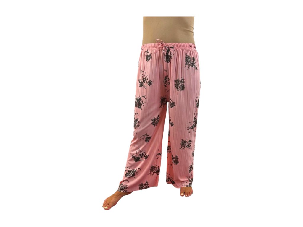 NOVINKA- Volné kalhoty s velkým květinovým vzorem - růžové