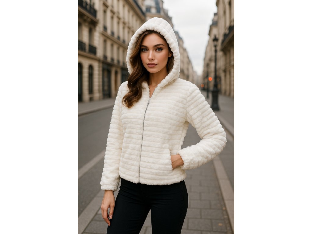 Polar fleece bundička s kapucí -pruhy - Bílá