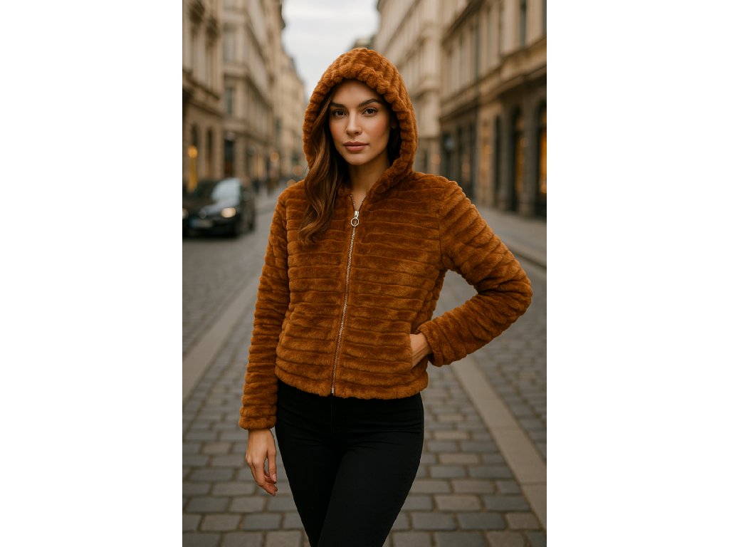 Polar fleece bundička s kapucí -pruhy -Okrová
