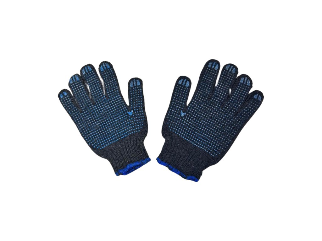 Pracovní rukavice šité z bavlny s protiskluzovými terčíky z PVC, velikost 8, modrá/modrá