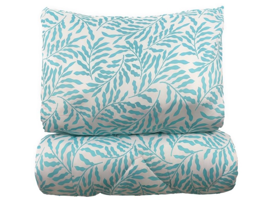 Přikrývka a polštář - 7475-1 tyrkysové listy