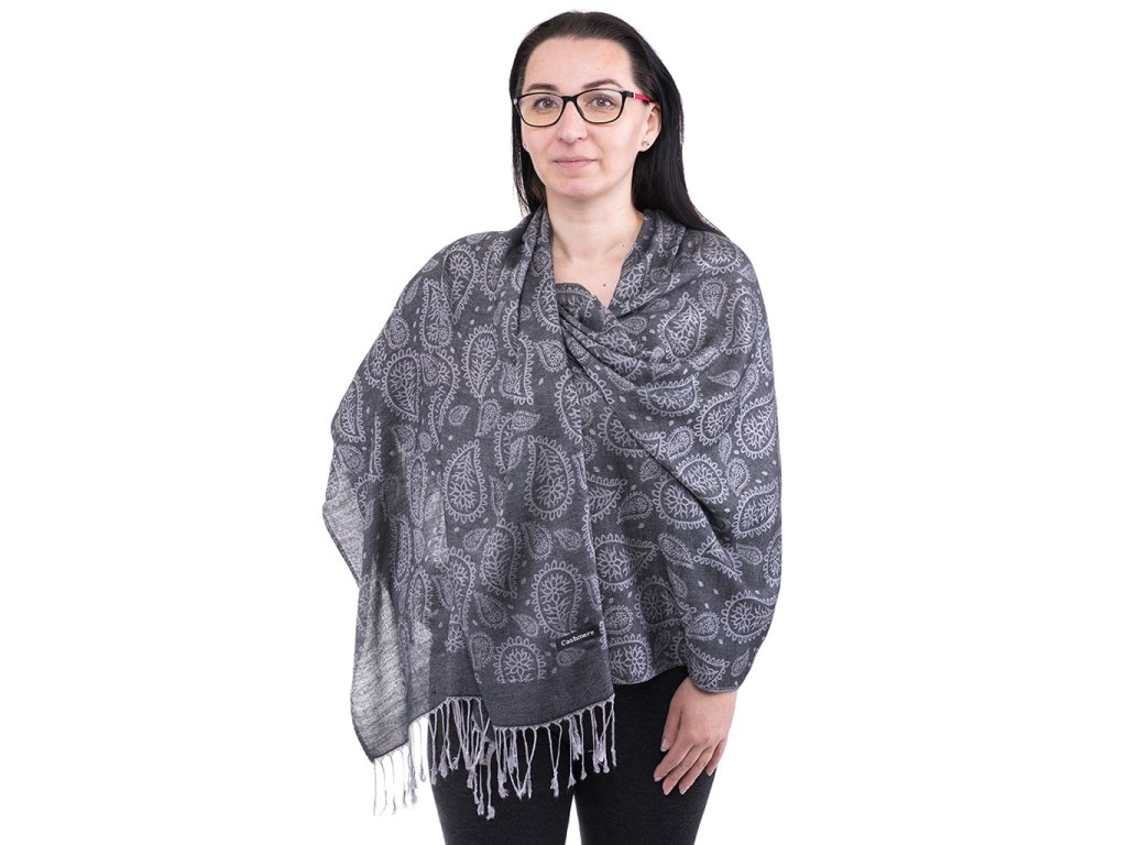 Šál Pašmína KAPKY - tm. šedý