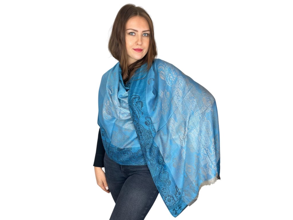 Šál Pašmína - Florenta- Světle modrá