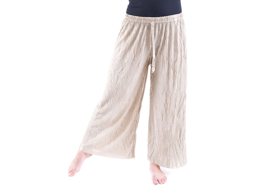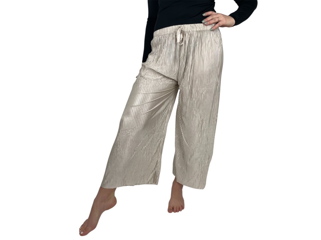 Sale-Dámské plisované volné kalhoty 911-101 - béžové
