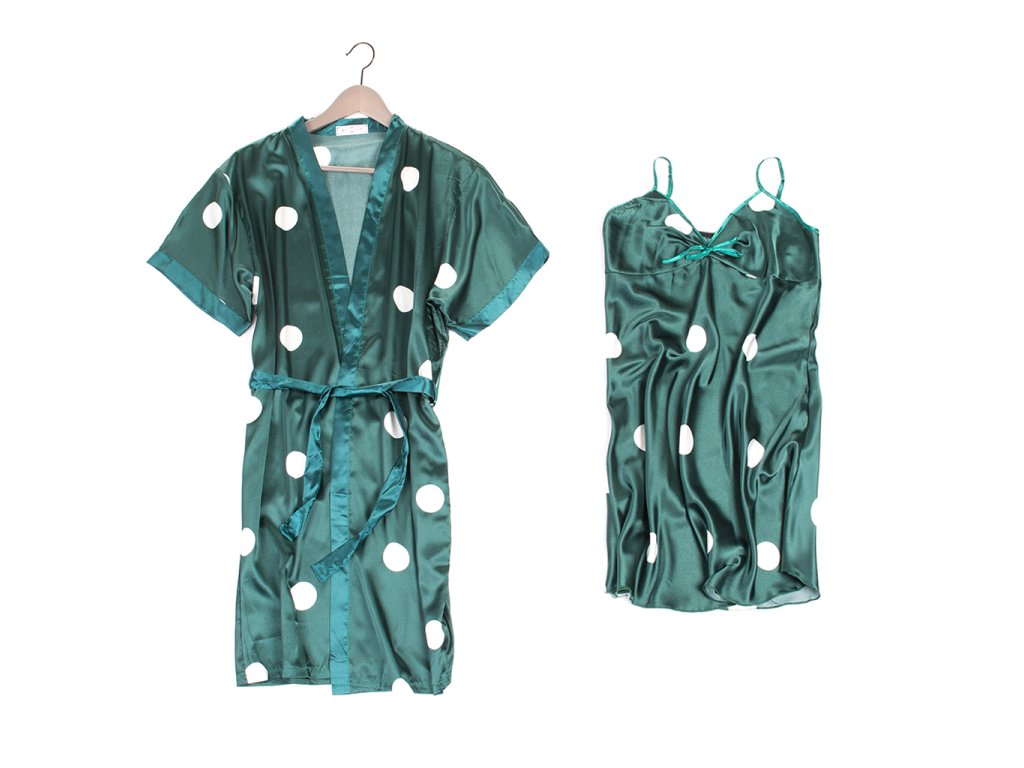Sada krásné noční košilky na ramínka s županem se stejným vzorem. Roztomilý vzor, hladká látka, měkká, příjemná na nošení.