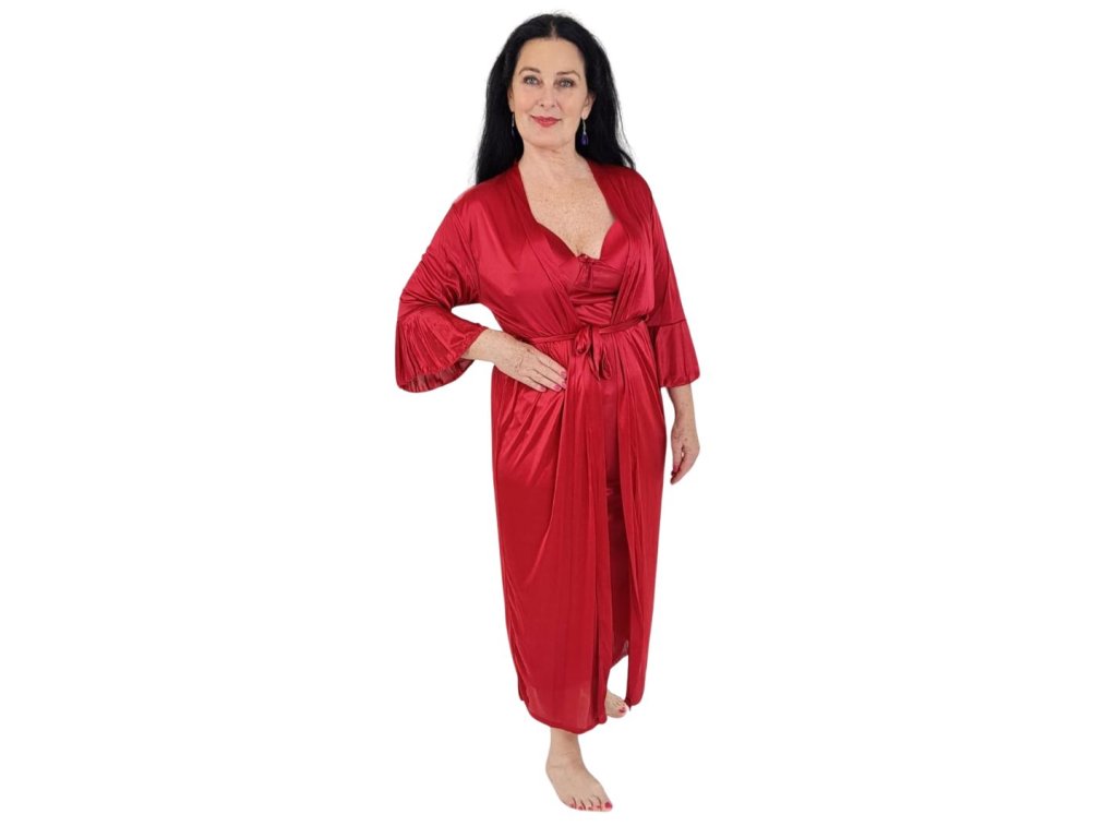 Saténová noční sada-košilka, župan - ČERVENÁ