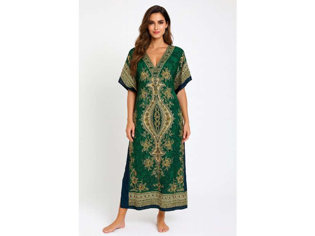 Šaty,kaftan dlouhý Ornament GREEN