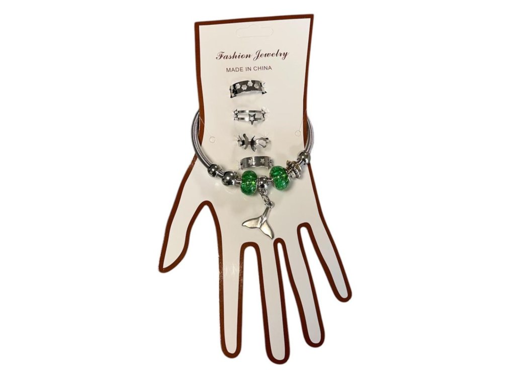 SET náramku s prstýnky - zelený
