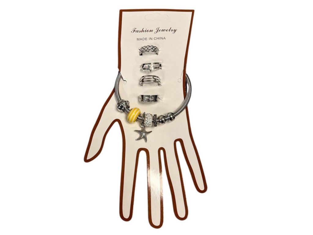 Dokonalý doplněk pro každou příležitost! Tento elegantní set obsahuje jemný náramek a čtyři ladící prstýnky v moderním designu. Skvěle se hodí jak na každodenní nošení, tak na speciální události. Kombinuj, vrstvi nebo nos samostatně – možnosti jsou nekonečné!
