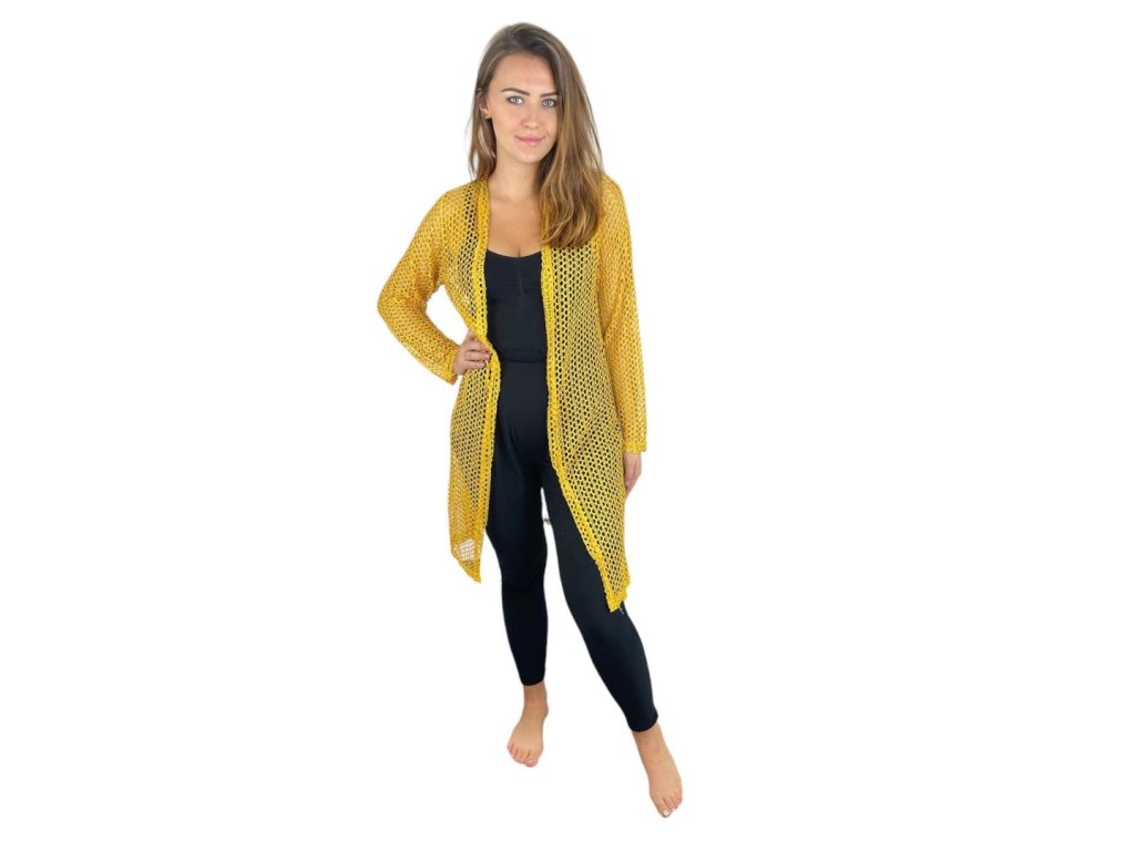 Síťovaný kardigan - žlutý