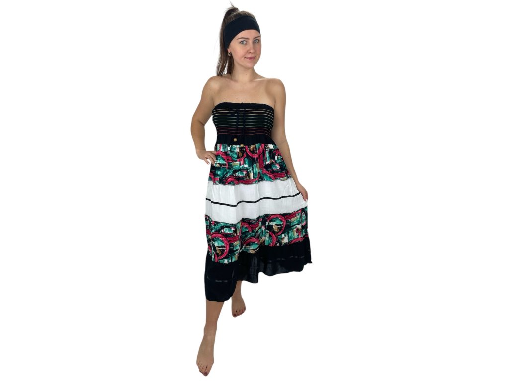 Sukně a šaty v jednom černé s růžovými kruhy