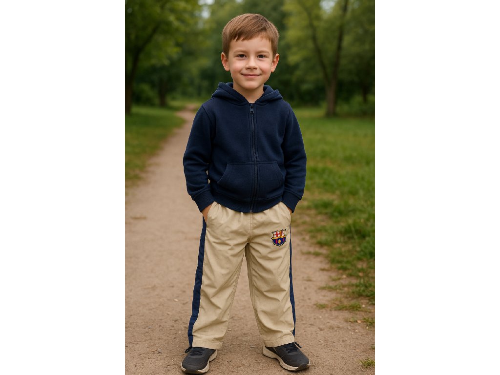 Lehké šusťákové kalhoty FC Barcelona – ideální na ven i do přírody. 2. jakost (lehce přišpiněné).