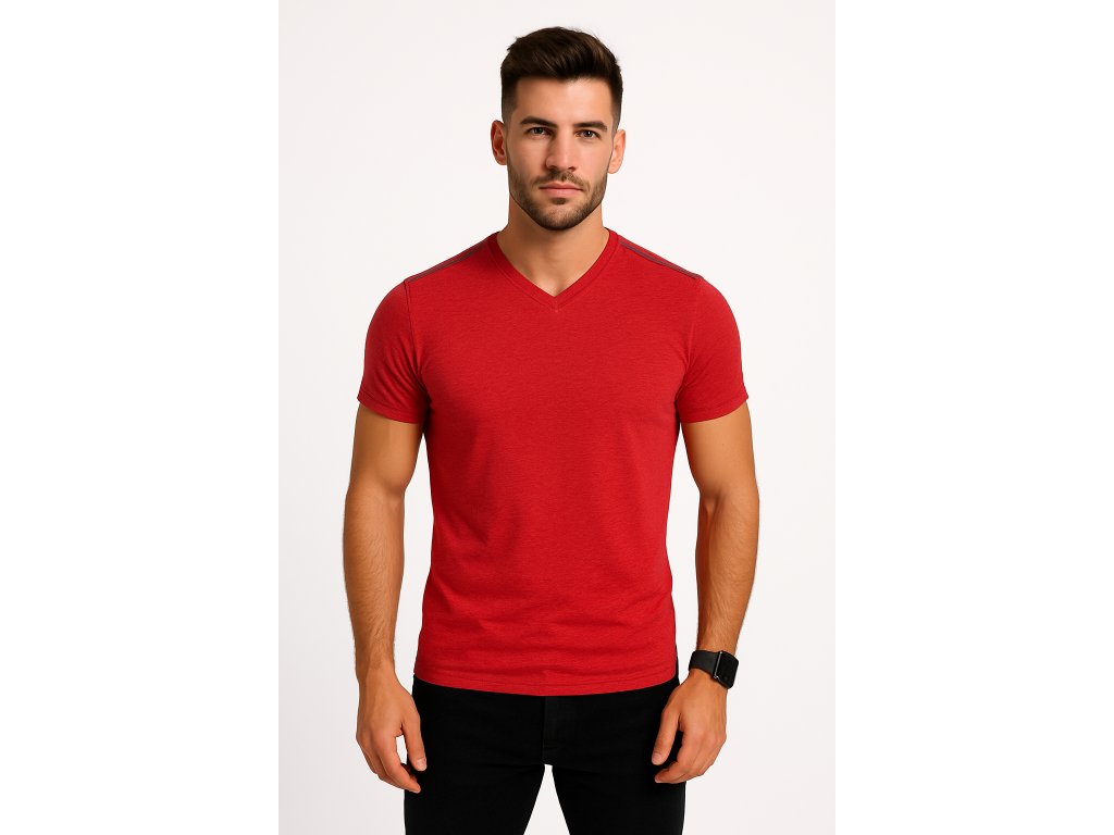Delší tričko rovného střihu s krátkým rukávem. Zažijte dokonalé pohodlí v našem tričku s véčkovým výstřihem .