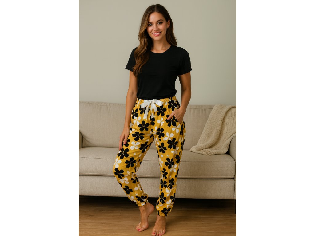 Veselé dámské kalhoty, domácí kalhoty RM2 - béžové s květy