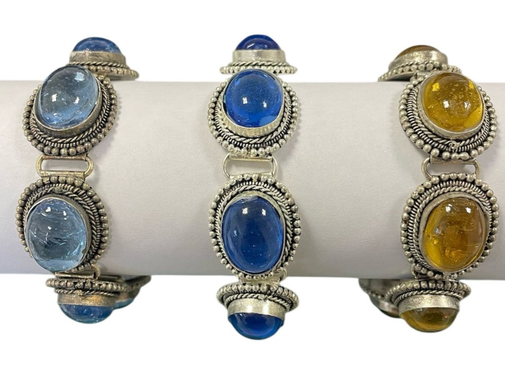 Vintage náramek - žlutý, tmavě modrý, světle modrý