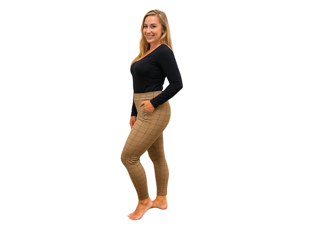 VÝPRODEJ-Dámské kostkované legíny - hnědé