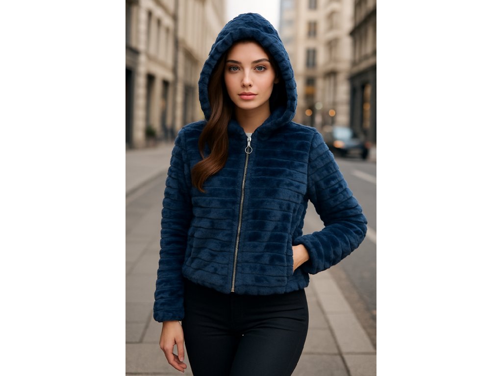 Výprodej-Polar fleece bundička s kapucí -pruhy -Modrá