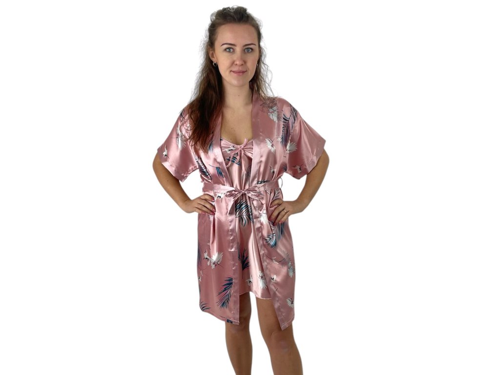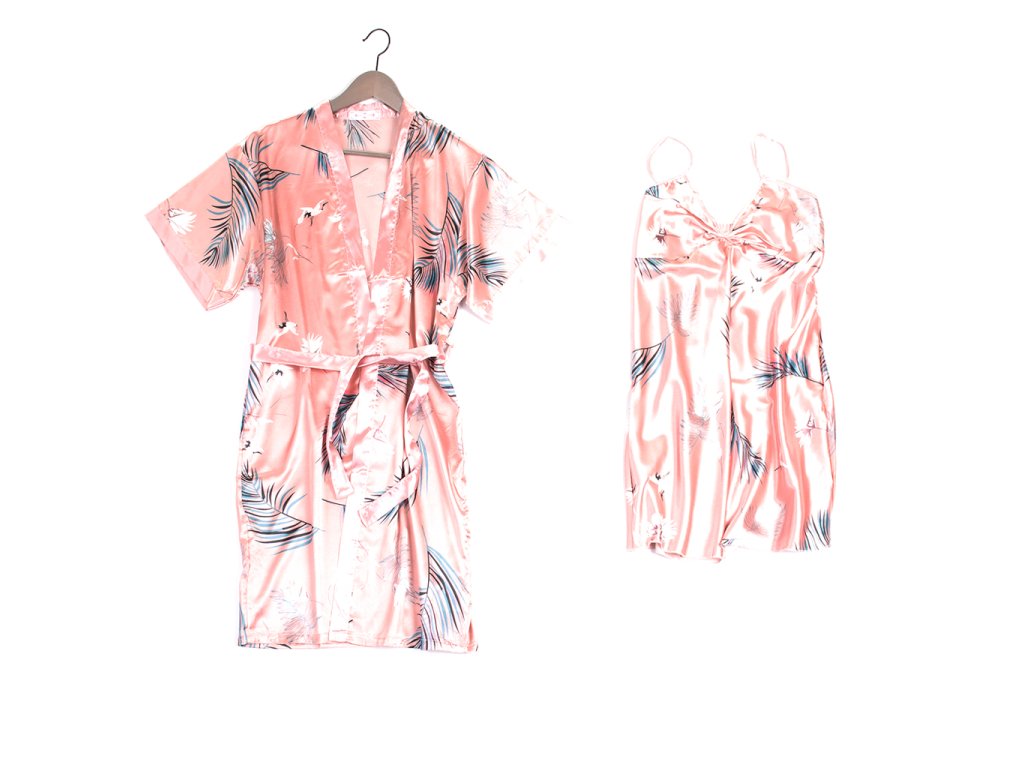 Sada krásné noční košilky na ramínka s županem se stejným vzorem. Roztomilý vzor, hladká látka, měkká, příjemná na nošení.