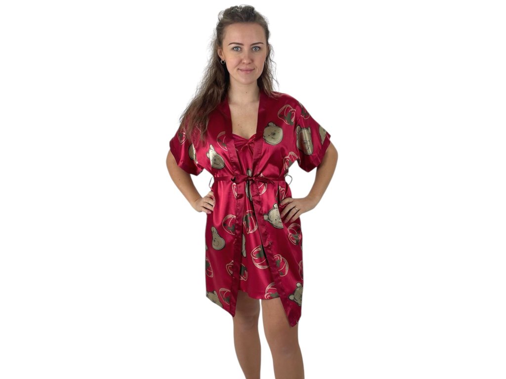 Sada krásné noční košilky na ramínka s županem se stejným vzorem. Roztomilý vzor, hladká látka, měkká, příjemná na nošení.