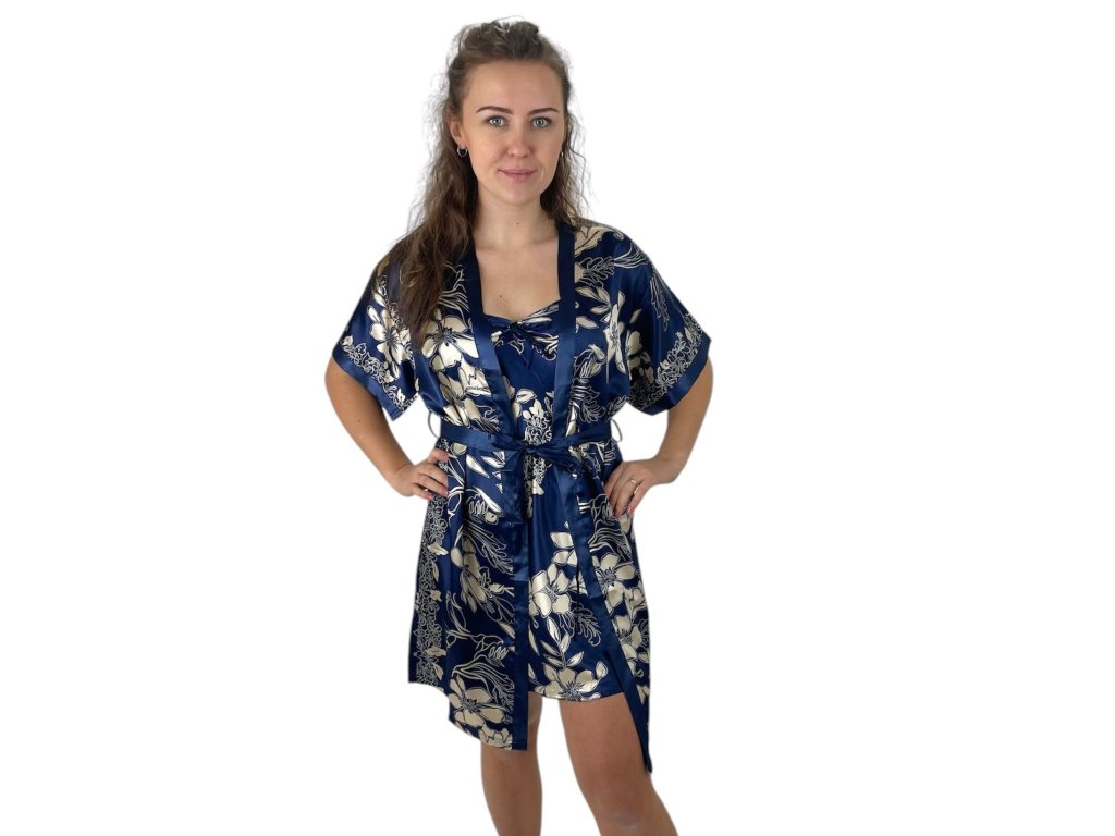 Sada krásné noční košilky na ramínka s županem se stejným vzorem. Roztomilý vzor, hladká látka, měkká, příjemná na nošení.