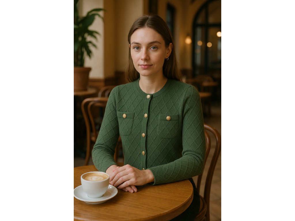 ZIMA-Svetr se zlatými knoflíky zelený