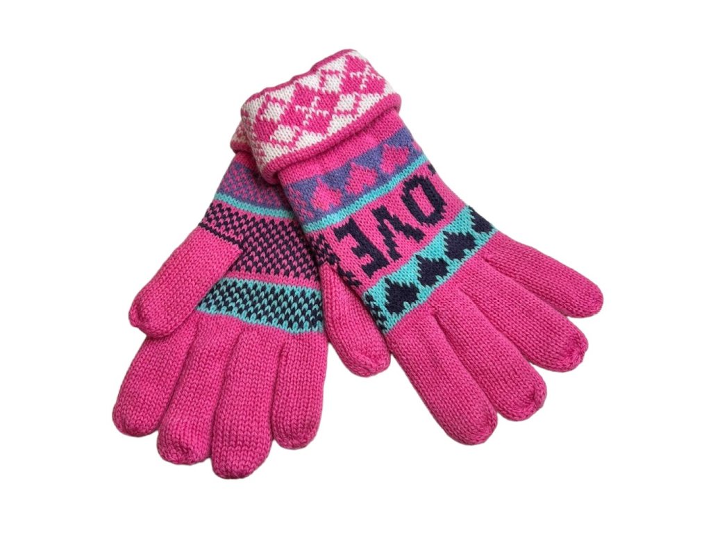 ZIMA-Zimní prstové rukavice - Love tm.růžové