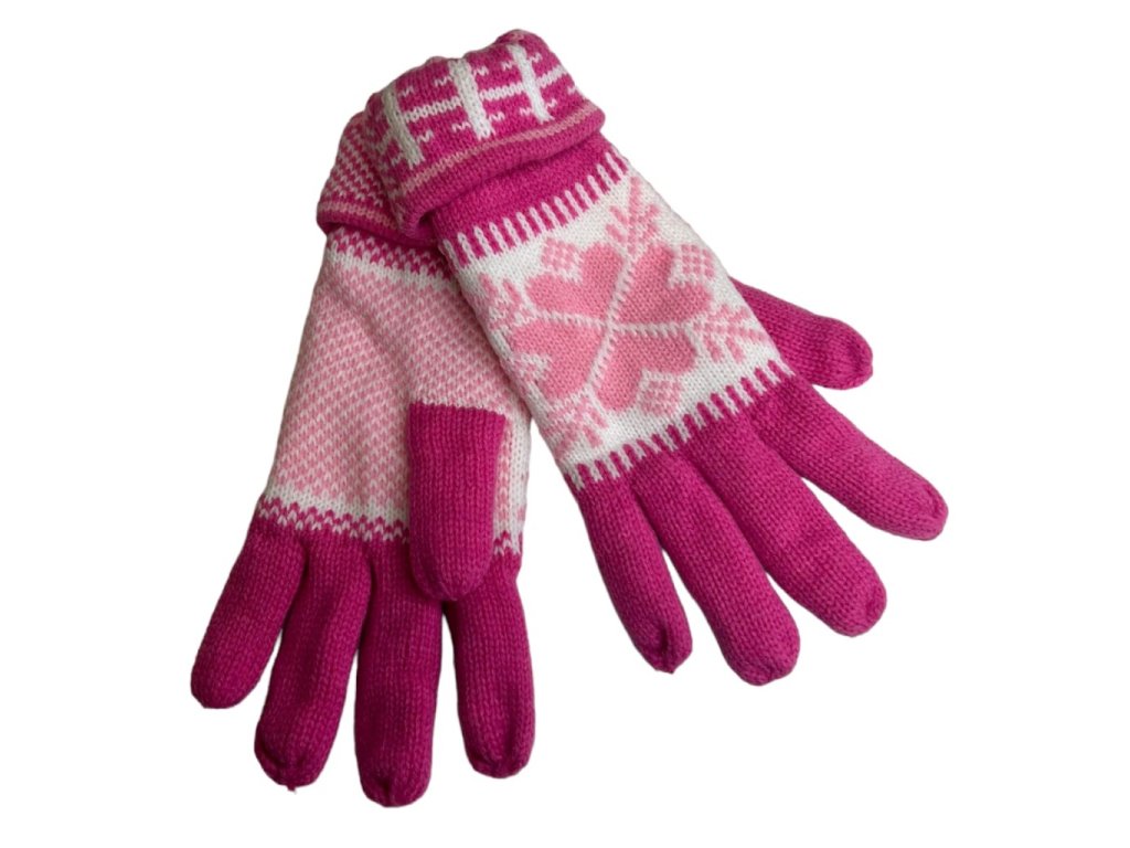ZIMA-Zimní prstové rukavice - Vločka tm.růžové